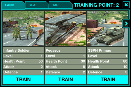 Gameplay: • Use your finger to draw lines to control your units, they will move on the path you have drawn and automatically attack enemy units within their range. • Strategise the most effective ways to intercept your enemies and destroy their base camps to win the battles. • There are 10 campaign levels in the game. As the campaign progresses, the battle field will expand and enemy forces will increase in size and levels. • As you overcome challenges and achieve victories through the levels, you will rise through the ranks, command larger forces and unlock more advanced weapons. • Use your earned training points to train and level up your units to increase their attack and defence powers. • Call in powerful reinforcements including infantry drops, first aid kits, air strikes and missile attacks. • Take decisive actions and harness the power of networked land, sea and air forces to achieve victory! • Learn more about the various weapons that the 3rd Generation Singapore Armed Forces (SAF) uses. Download Ops Battleforce at App Store.